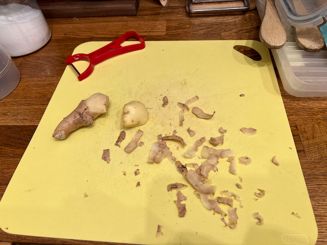 ½ cup of grated ginger. I use a regular box grater with the next to smallest holes.