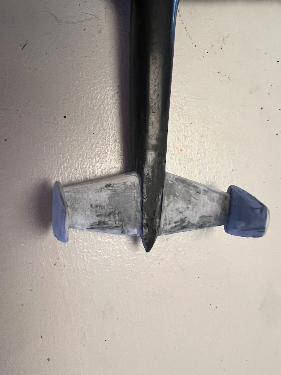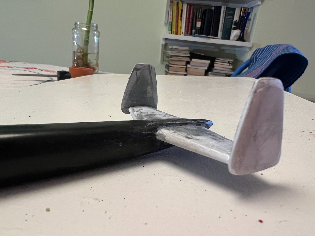I took it down when we painted a couple of months ago, and I thought, “how do I get this to look less like a cross?” Why, fix the tailplanes, of course!