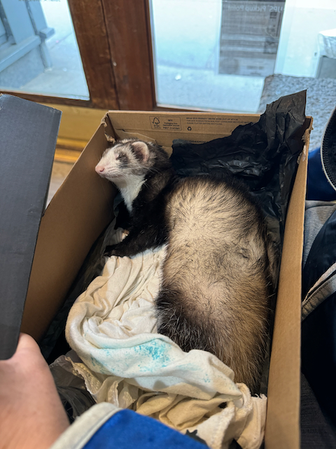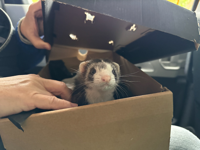 “Yeah, it’s a ferret,” she said, lifting the cover so I could see inside.
