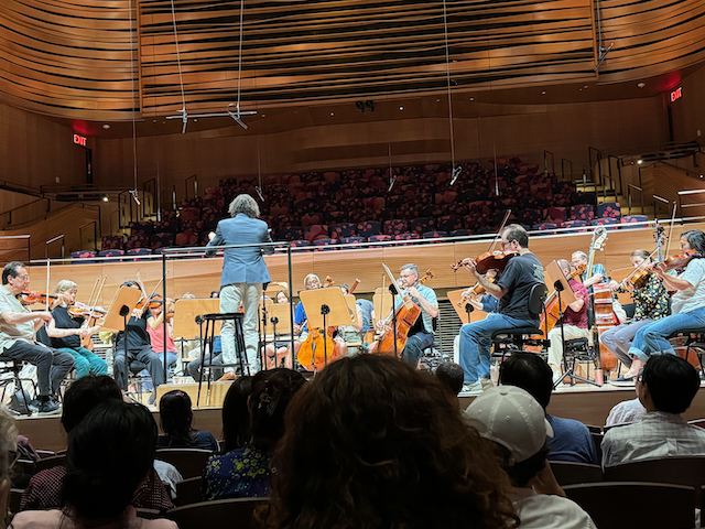 Being retired I have to think of creative ways of filling the day. Being on a fixed income makes it more of a creative pursuit. Fortunately, this being New York City there are plenty pf low-cost things to do. Some are even free. In the past two weeks I’ve seen three movies for half price, gone to the Goatham opening day in Riverside Park, and attended a “Relaxed open rehearsal” at Lincoln Center. Today I scraped and painted a couple of ancient lampposts in Riverside park- but that’s another story. “TK,” as they say in publishing. The movies I know about because I look up any senior discounts that are available in my sphere of activities, and AMC theaters have a senior discount. Matinee showings are 25% off every day. Some theaters do a Tuesday discount, so you can look for that if you’re interested. So, with my senior discount I was able to see “Touch” for $7. I paid $9.95 last week to see Kinds of Kindness because I bought the ticket online and had to pay the service fee- something I won’t be doing again, knowing there’ll be plenty of seats available for the 10:30 or 12:30 show. There were five people at the showing of touch I went to. I was the only male. I went to the 10:30 for Kinds of Kindness because it’s almost 3 hours long. Before seeing Touch last Tuesday I went to an open rehearsal at David Geffen Hall. I thought that would be empty too, so I was surprised at the amount of people not working at 10am on a weekday morning. I found out about the open rehearsal because I get regular emails from Lincoln Center. I did not know what to expect, but it sounded more interesting than the third hour of Today. I’ve always loved classical music, since the first time I heard a chamber orchestra when I was in the fourth grade in P.S.270. Not as much as rock music, but enough to know something about it and appreciate it. Tuesday’s program was to be a rehearsal of Beethoven’s 6th symphony, the “Pastoral.” As a rehearsal there would be stopping and starting, and comments. Sounded like fun, to see behind the scenes, so I reserved my free ticket online and showed up early. As I went in, I was offered either noise cancelling headphones, or a rainbow-colored silicone bracelet called a “fidget.” I had no idea what a fidget is, but it’s smaller than the noise cancelling earphones, so I took that. I wondered why anyone would wear noise cancelling earphones to a music concert and why they were even being offered. I figured out what to do with my fidgit once I sat down. I went in and found a seat near the stage in the orchestra and looked around. I expected mostly older folks like me and was surprised to see quite a lot of younger people. Some made sense-groups that looked like day camp kids or school groups, and young moms with their babies or small children who want to get out of the house. The orchestra was tuning up, as more and more of them filed in wearing everyday clothing- shorts, T-shirts, sneakers and the like. Presently a woman took the stage and outlined the program. The one interesting thing I heard, beside that I might hear people talking aloud or moving about was that the auditorium was a “no shushing zone.” “If you feel uncomfortable for any reason, please feel free to go out into the lobby and sit. You can come in or out anytime during the rehearsal.” I wondered who would come to a classical performance to talk aloud and move around at will.