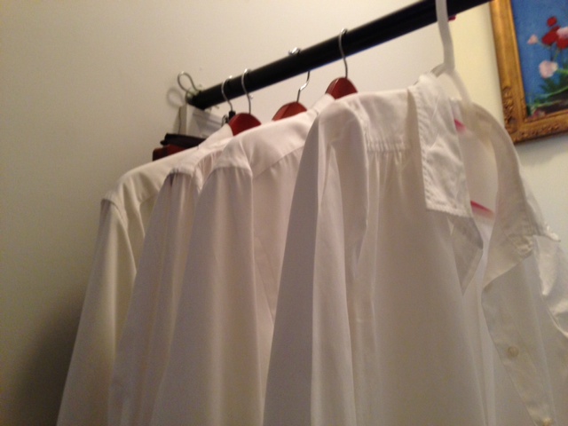So I have come full circle, and though I still don’t love doing it, a derive a certain satisfaction from an accomplishment, I pack the clothes, take them down the block to the laundry, but instead of dropping them off to be done, as I’ve done for the past 6 or 7 years, I do it myself. I separate the whites from the colors, wash the colors in cold water, and when that’s done, I always remove the jeans and the things I want to iron before throwing the rest in the dryer. The jeans I hang to dry, the white shirts I starch and press while they are still damp, as they come out looking crisper than if you let them dry first. I don’t dry the jeans because they will not fade as fast and last longer if I don’t put them in the dryer. I had a friend that said you should never wash a pair of jeans, but I also remember the way he smelled. I think I’ll keep doing it they way I’m doing it, at least until things change again.