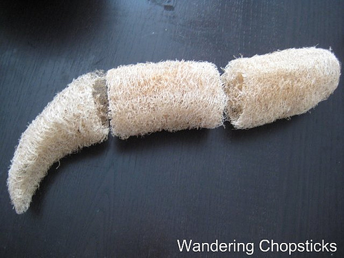 I prepared for the bathing lesson by buying a brand new loofah at the drugstore, and getting out a fresh white towel for him. I had been using loofahs since I was a kid, my dad would bring a supply of raw ones back from Mexico, like the one in the picture above. You can only get the cut-up ones at the drugstore on 9th Avenue.
