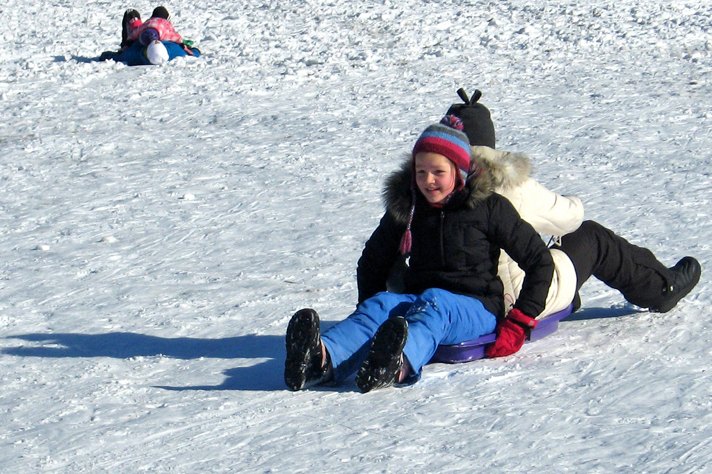 When I was a kid, I went sledding once in Prospect Park, on a cardboard box. Some kids were lucky enough to have garbage can lids that they’d managed to break the handles off of. My piece of cardboard didn’t last too long, it got wet and fell apart. I was reduced to sliding down the hill on my ass, which got wet pretty quick as well. The kids with the lids were not willing to share.