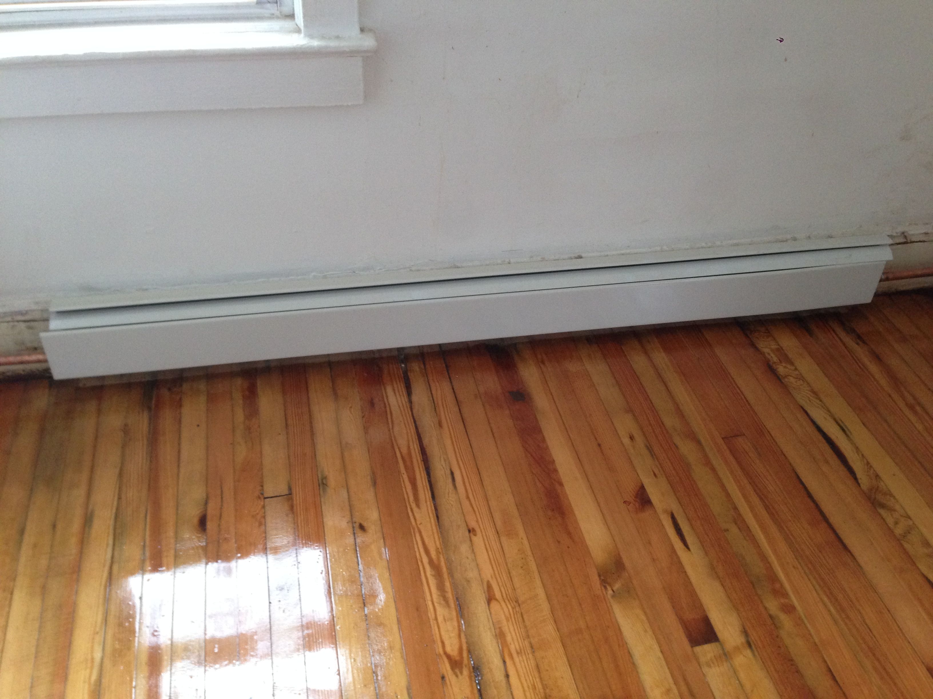 One of the new heating elements and the floor with poly on it.