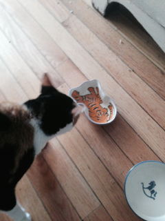 The other morning the cat was being a real pain in the ass, mewling and running over to her food bowl. I figured the cat was hungry, and when I went over to get the food dish, which still had food in it, I was shocked. There were hundreds of ants all over it, with a trail of them leading to a crack in one of the floorboards.