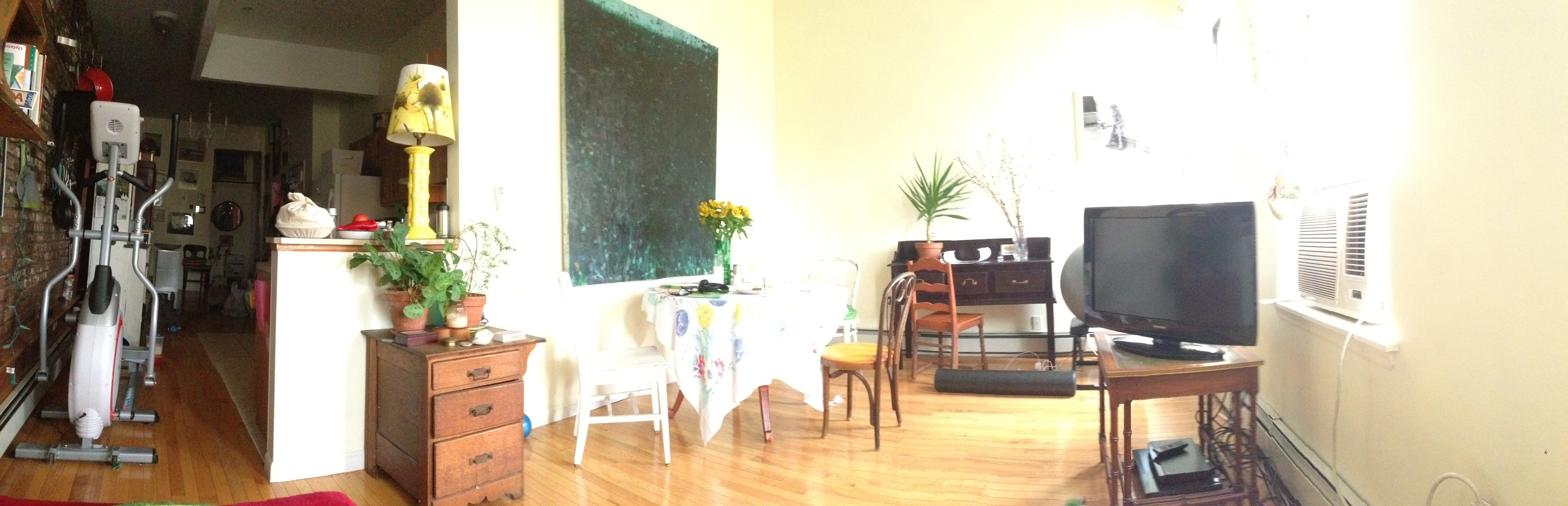 I was going to do it, but Danusia insisted on getting up there while I held the ladder steady. There was a lot of dust, much more than on the bedroom fan. Maybe it’s because of this fans proximity to the kitchen? Or the J train right outside the front window?