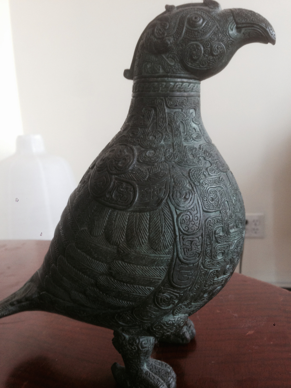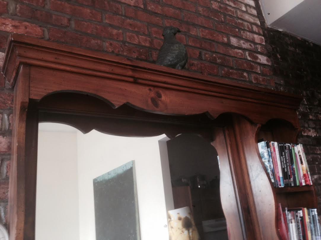 I also got down the brass bird from the top of the mirror-mantel, I guess that’s the only way I can think of describing this thing: