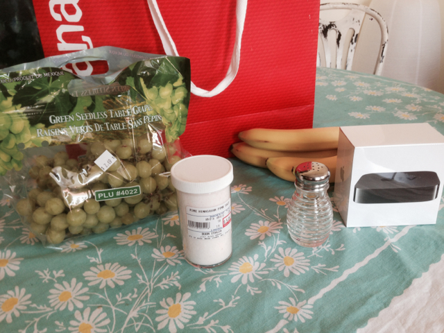 I got some grapes and bananas and when the girl tried to bag them up I said:
