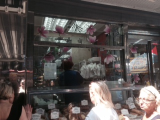 We went shopping on Brighton Beach Avenue afterwards, amongst all the dressed to the nines old Russian women and the smattering of non-Russians who are filtering into the neighborhood. At one store there was a woman at a stand in front with all kinds of pastries. I wanted one, but not being able to read Cyrillic writing I had to ask. The Russian woman ignored us until Danusia tried to open one of the plastic cases so I could look. The woman slammed the cover down and let out a stream of Russian, scolding us.