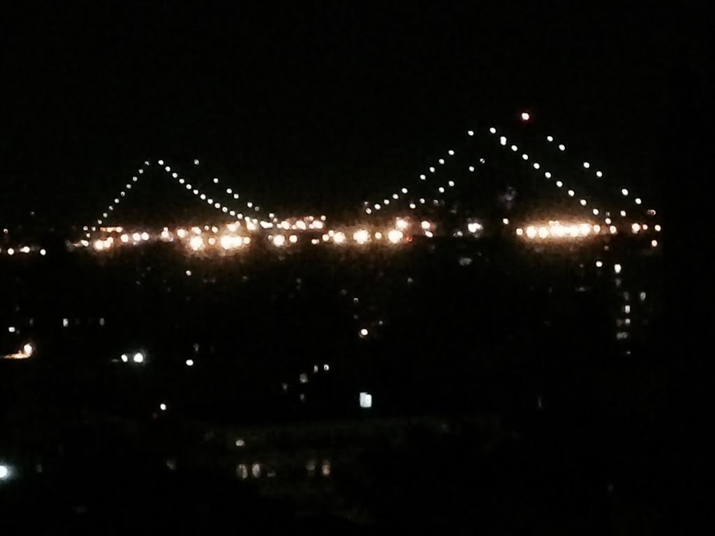 I could see most of the city, most of downtown, anyway. There was the Empire State to the north, and the new Freedom Tower to the south. The Williamsburg Bridge glittered to the east, my route home to Brooklyn. There was a big yellow half-moon in the sky, partially obscured by thin clouds.