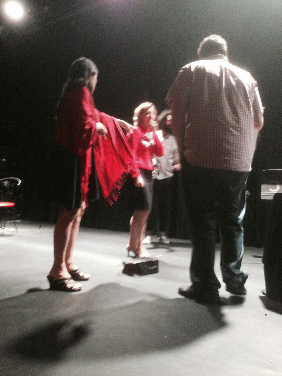 Danusia was in the sixth spot, right after the intermission and she was so nervous she got up to go to the bathroom during the break and I started getting antsy when I saw Dan and the producer (Jennifer Hixton) getting ready to take the stage and Danusia was still upstairs in the Green room. Which BTW wasn’t even green and was hot as hell.