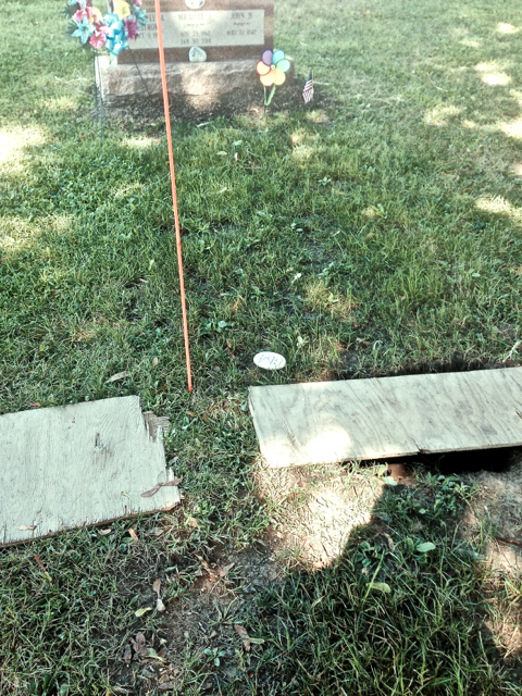 We parked the car and walked over to the gate, and using the picture Jenny had sent we found the spot where two fresh holes were dug for headstones.
