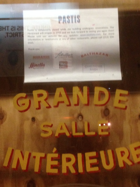 I passed by the now closed Pastis, and I did eat there once, but only because my friend Linda was waitressing there and insisted I drop by. I had coffee and some kind of pastry and didn’t have to tip her. I didn’t see anyone famous.