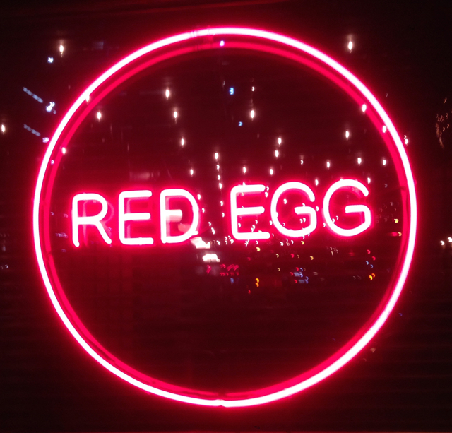 I got to Centre Street and turned downtown and saw a place called The Red Egg. The sign fascinated me, both the painting of the girl holding the egg at the top of this post and the neon one below that was in the window. Across the street from the Red Egg was a different kind of Chinese restaurant, a giant buffet-style place with big plate glass windows that let you look into the brightly lit tables crowded with neighborhood regulars having a cheap dinner. A lot of Chinese immigrants that work and live in Chinatown live in places they can’t really cook, so these buffets are a lifesaver for them.
