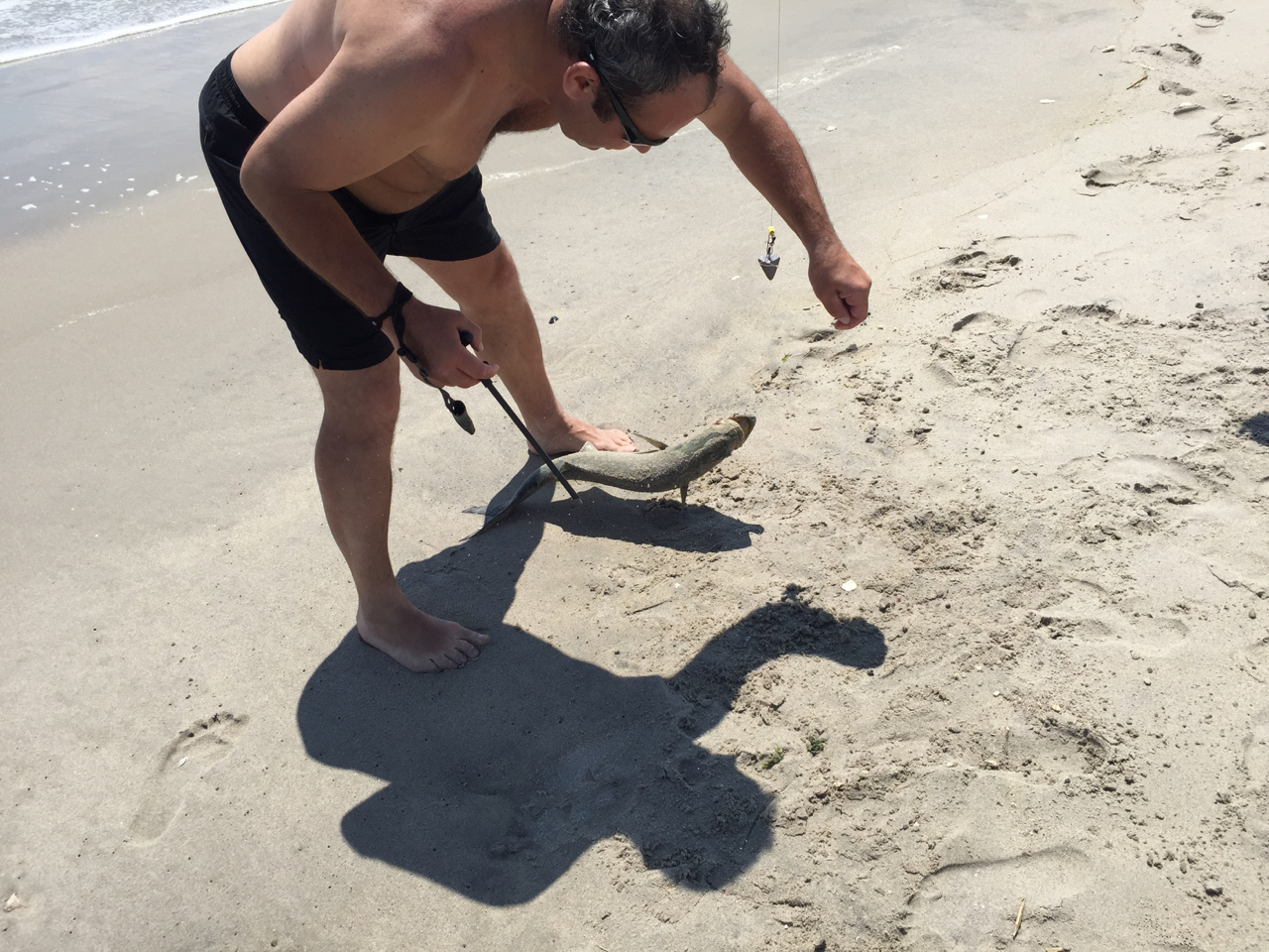 We came out on a beach hidden by sand dunes, there’s some kind of fisherman’s club there. We saw a Russian fellow catch a fish.