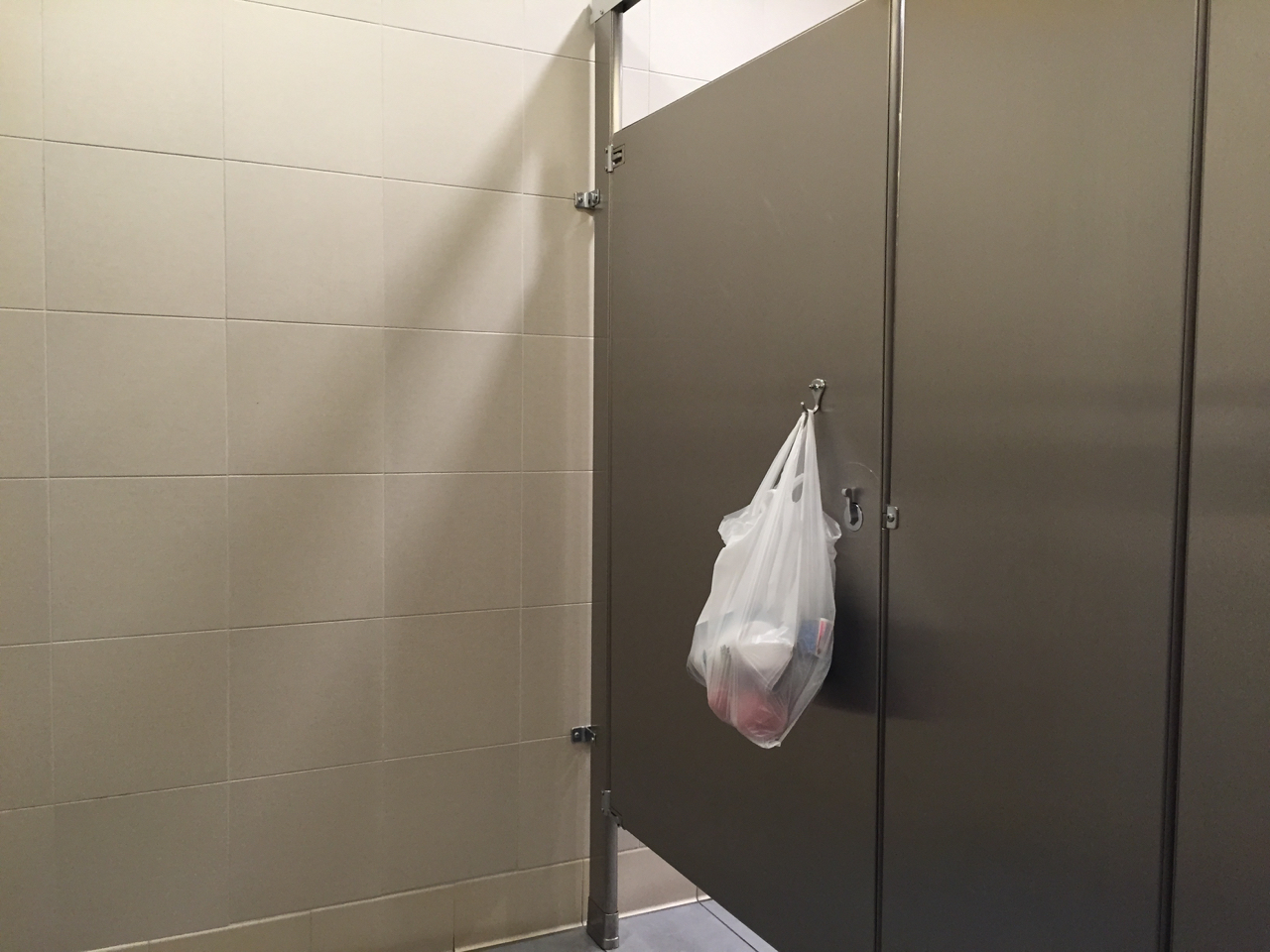 By now I know where to find restrooms in New York. All the big stores have them, Macy’s Bloomingdale’s, and whatever the store that took over Filene’s basement in Union Square is good. I was disappointed with Bloomingdale’s in Soho; one of their stalls had a leaky flushometer for months. It actually had a rag tied around it. Come on, Bloomingdale’s, you can afford to hire a plumber. I resisted an urge to bring a Channel Lock with me to tighten it up myself.