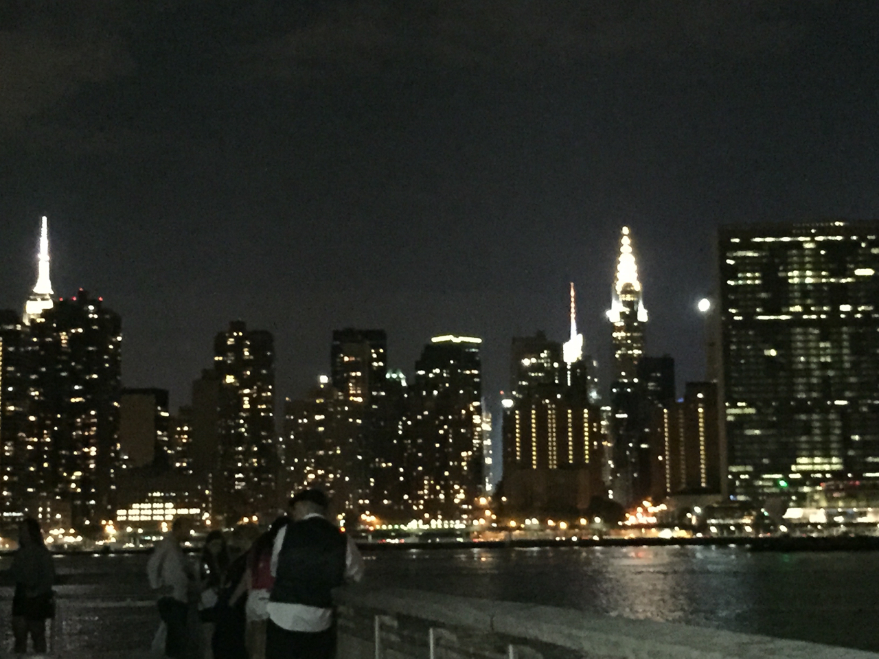 Later on, after it was dark, we all walked over to the new esplanade on the river to get a closer look at Manhattan. It was a nice cool night and there were hundreds of people on the pier. It got late and I suggested we go home, and there was a 7-train stop nearby.