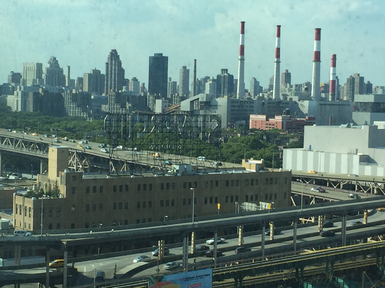 On the west side you can see most of Manhattan, but you can also see the Ravenswood Con Edison plant with its four stacks painted red and white. I worked there the summer I was 19. I got to go into the largest generator on the east coast, Big Allis. It was very hot inside, 140°.
