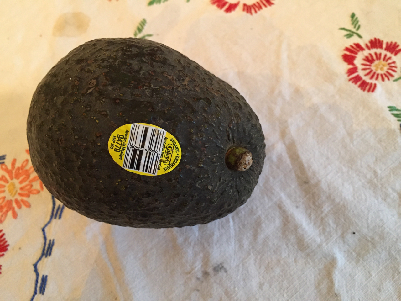 The normal test for ripeness is color, when the avocado turns either red or black it’s ready. You are supposed to press lightly on the surface to see if it gives, that works too but results in a bruise. And I hate bruised avocados.