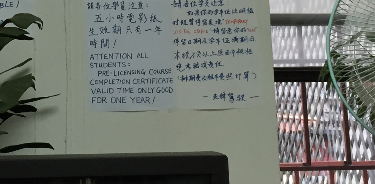 So Sunday I went to my 5-hour class in Chinatown, and I was wondering what could be so involved about driving that it would take five hours. I can’t remember what took five hours in 1990, but I remember getting through it.