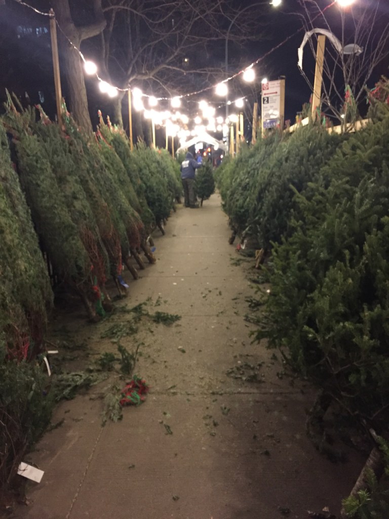 Last year I went to get a paper on Broadway the day after Thanksgiving and there were two small trees in front of a fruit stand on 158th Street. They were just leaning in front of a storefront gate.